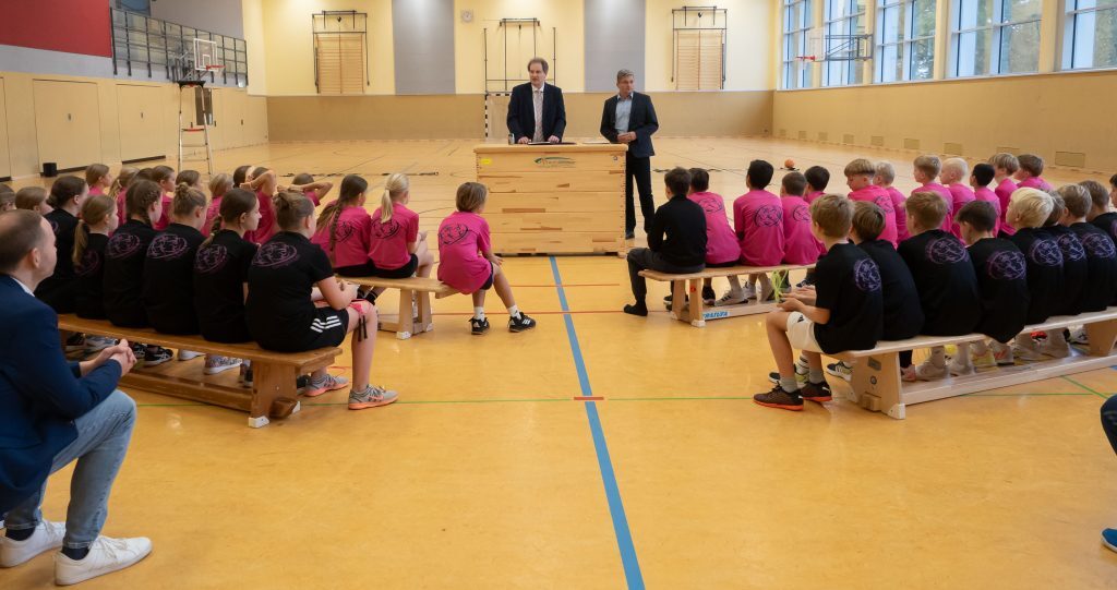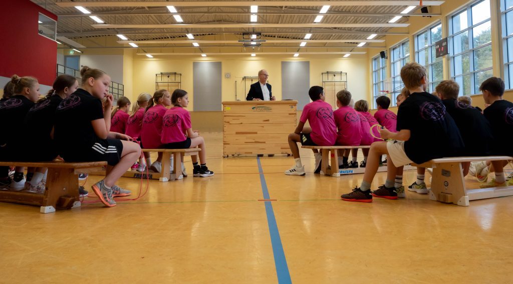 Hierbei hob Herr Sieberg hervor, dass es viel Teamarbeit erfordere, ein so umfangreiches sportliches Konzept für das Fach Sport zu planen und tagtäglich in die sportliche Praxis umzusetzen. Dies sei ein Verdienst der gemeinsamen Anstrengung aller Kooperationspartner und der Fachgruppe Sport.