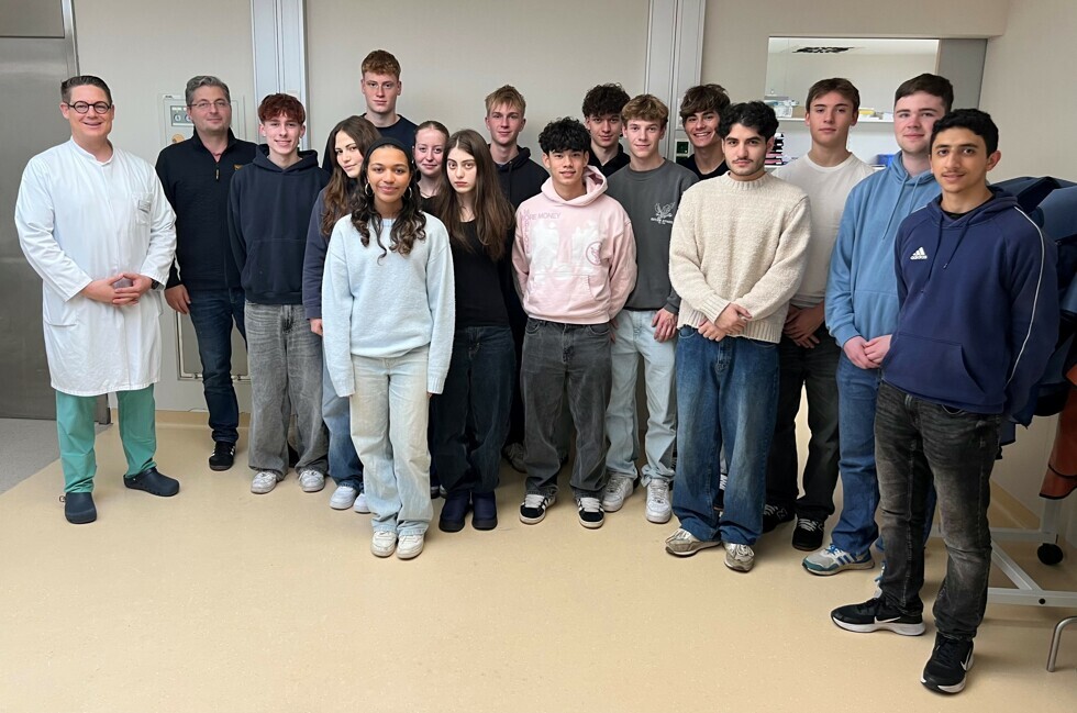 Geleitet wird das prüfungsrelevante Seminarfach von OStR Dr. Marc-André Kaufhold. Ein besonderer Schwerpunkt liegt auf den praktischen Erfahrungen: In Kliniken, Rehazentren und Herzsportgruppen begleiten die Teilnehmenden Ärztinnen, Ärzte und Pflegekräfte bei ihrer Arbeit. So konnten sie im Bonifatius Hospital den Weg eines Herzinfarktpatienten von der Notaufnahme über die Chest Pain Unit bis zur Intensivstation nachvollziehen. Nach einer Besichtigung des Linksherzkathetermessplatzes erhielten sie eine Vorlesung zu den häufigsten Herz-Kreislauf-Erkrankungen.