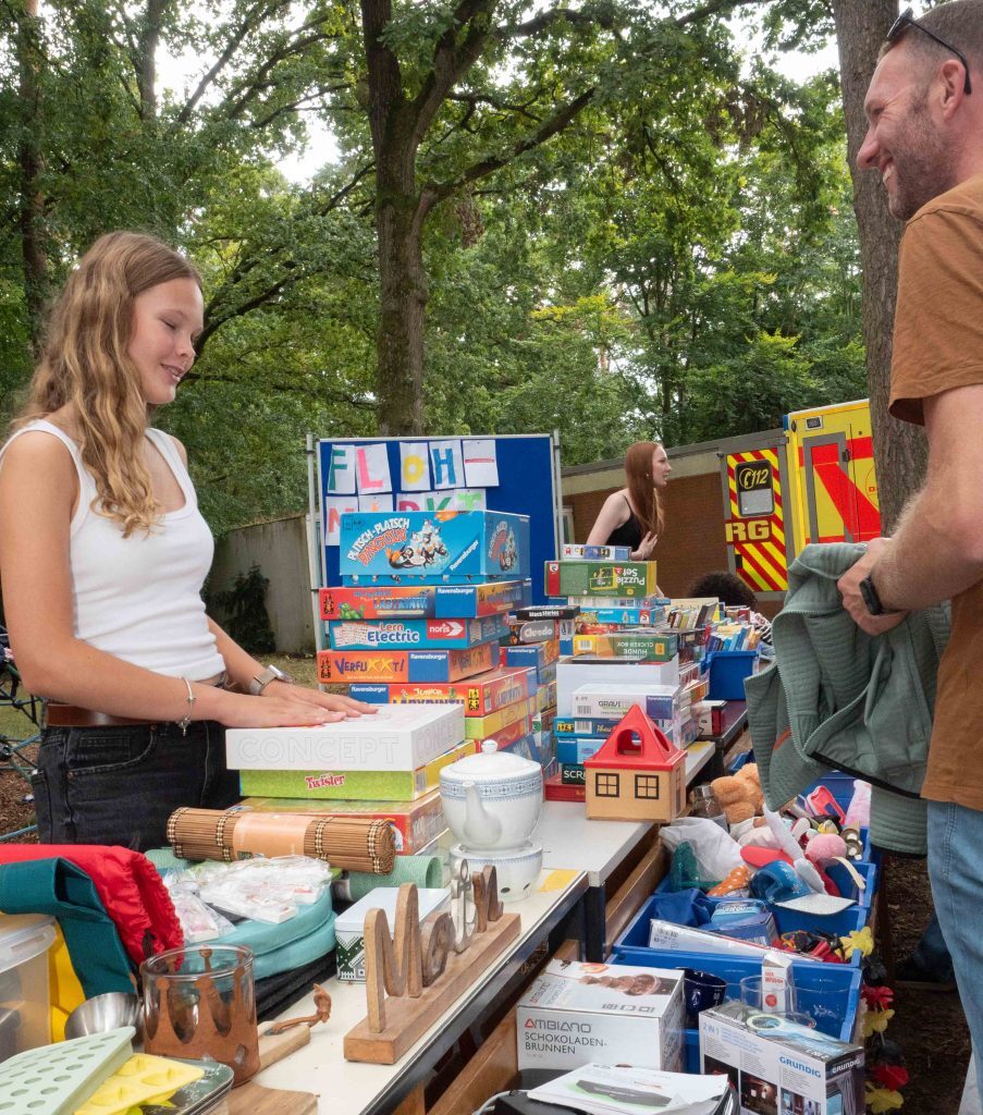 rau Hues gab noch letzte Tipps und Hinweise, vor allem in der Hinsicht, wie die Einnahmen des Tages gespendet würden. Denn die Hälfte des eingenommen Geldes werde der Schulgemeinschaft zur Gestaltung des Schulhofs zu Gute kommen, die andere Hälfte spendet die Schulgemeinschaft an regionale Initiativen und Institutionen, und zwar an das Kinderhospiz Löwenherz, den Krebsfond, das Tierheim, die Tafel Lingen und an das Christophoruswerk.